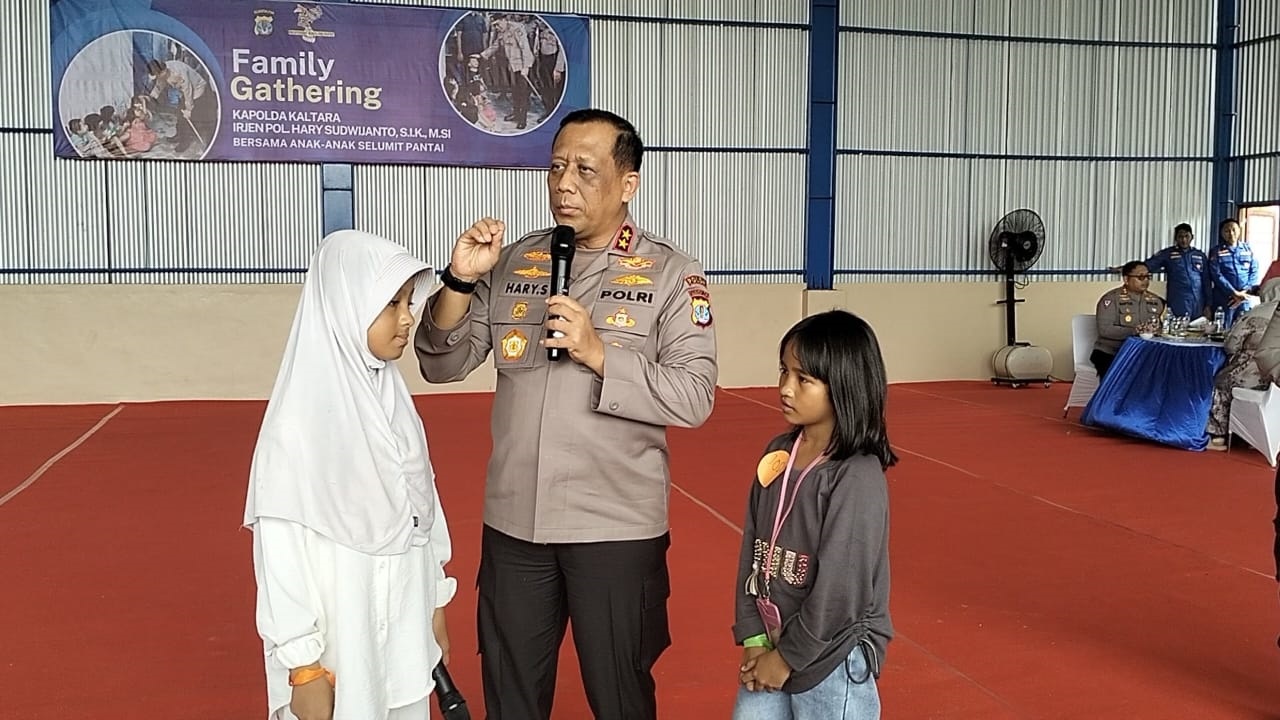 Menanamkan pemahaman terhadap bahaya narkotika dan obat-obatan berbahaya kepada anak-anak usia dini, menjadi salah satu kegiatan yang dilakukan Polda Kaltara dalam family gathering bersama anak-anak Kelurahan Selumit Pantai, Tarakan.
