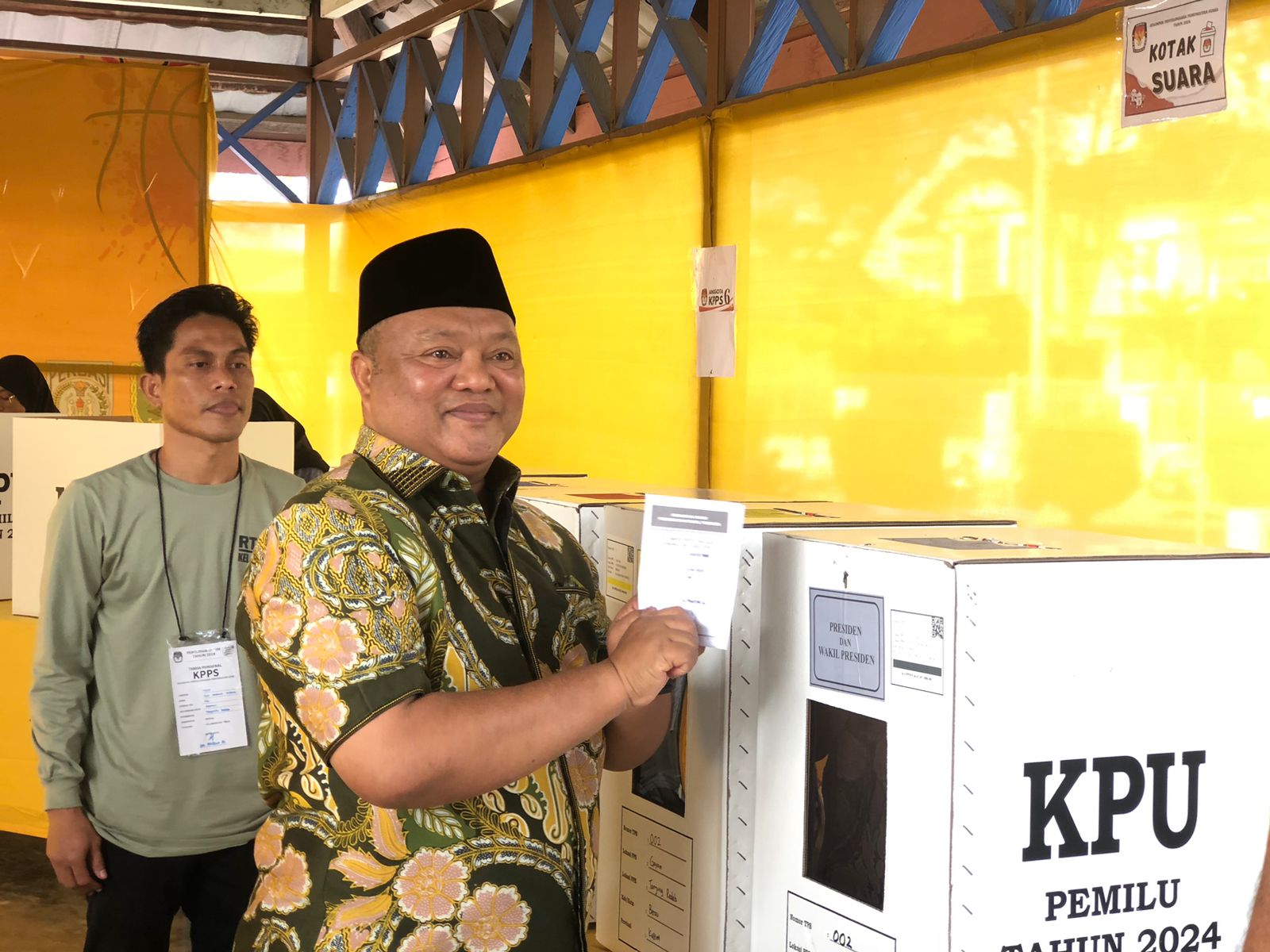 BUPATI Berau, Sri Juniarsih Mas dan Wakil Bupati Berau, Gamalis menyalurkan hak suaranya pada Pemilihan Umum (Pemilu) serentak Pemilihan Legislatif (Pileg) dan Pemilihan Presiden dan Wakil Presiden (Pilpres) Tahun 2024.