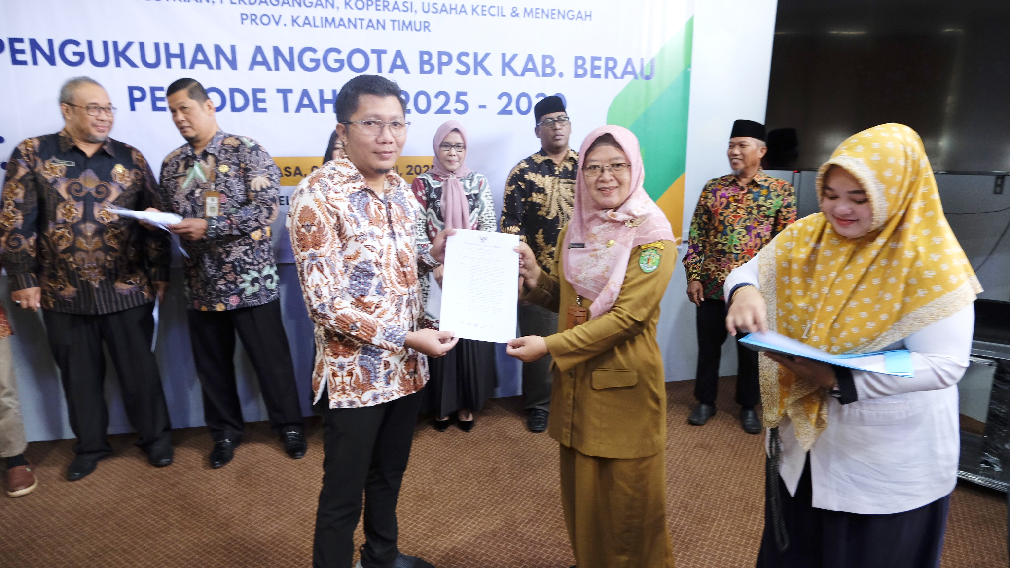 SEMBILAN anggota Badan Penyelesaian Sengketa Konsumen (BPSK) Kabupaten Berau periode 2025 – 2030 dikukuhkan, di Hotel SM Tower, Tanjung Redeb, pada Selasa (4/2/2025). Pengukuhan tersebut dilakukan oleh Kepala Dinas Perindustrian, Perdagangan, Koperasi Disperindagkop dan Usaha Kecil dan Menengah (UKM) Kaltim, Heni Purwaningsih