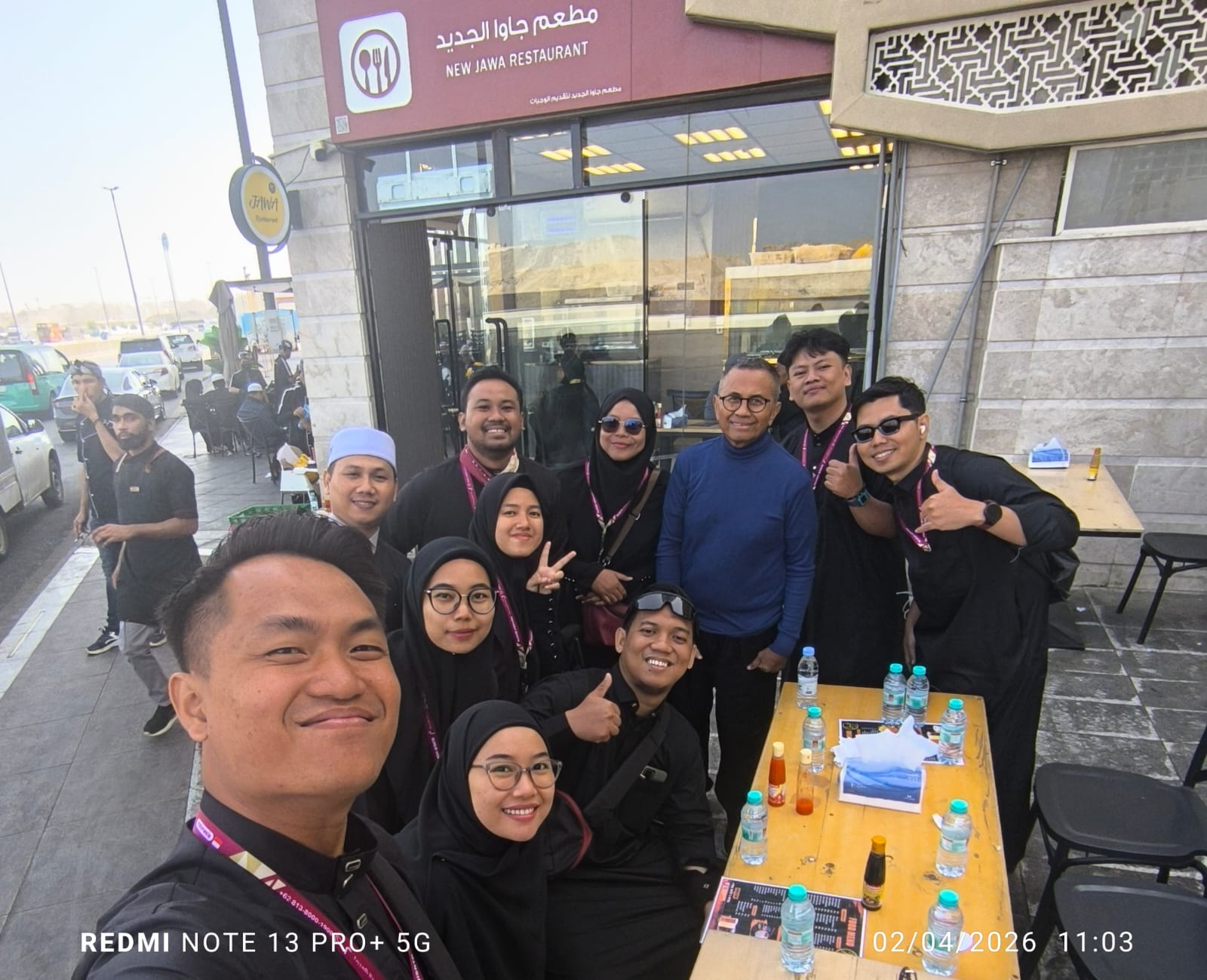 ”Terminal” mobil golf itu di dekat gerbang 330. Satu mobil bisa tujuh orang. Satu orang 20 riyal. Satu kali jalan.