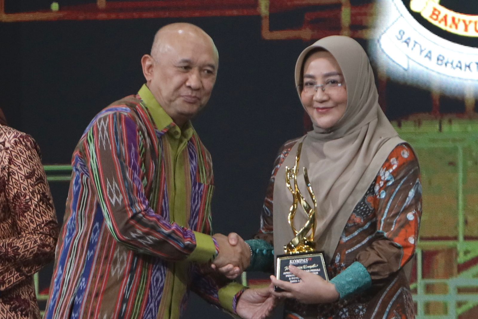 Penghargaan yang diberikan pada perayaan ulang tahun Media Kompas TV ke-13 diterima langsung Bupati Berau, Sri Juniarsih Mas.