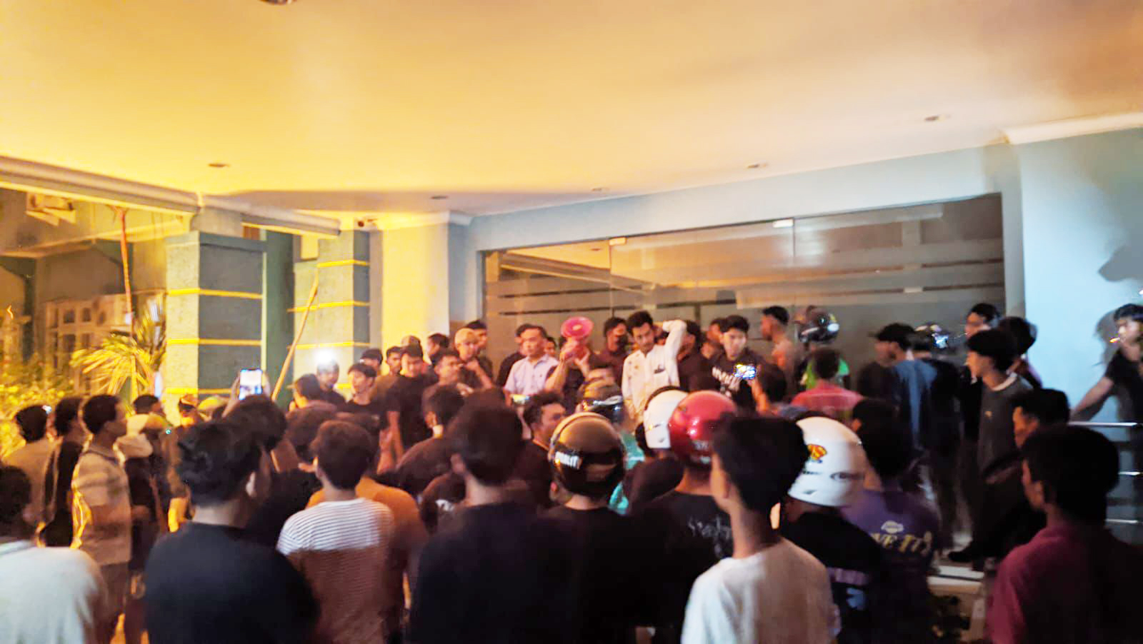 Berdasarkan pantauan Disway Kaltim, sempat terjadi aksi saling dorong antara masyarakat dan petugas polisi yang berjaga di depan pintu masuk.