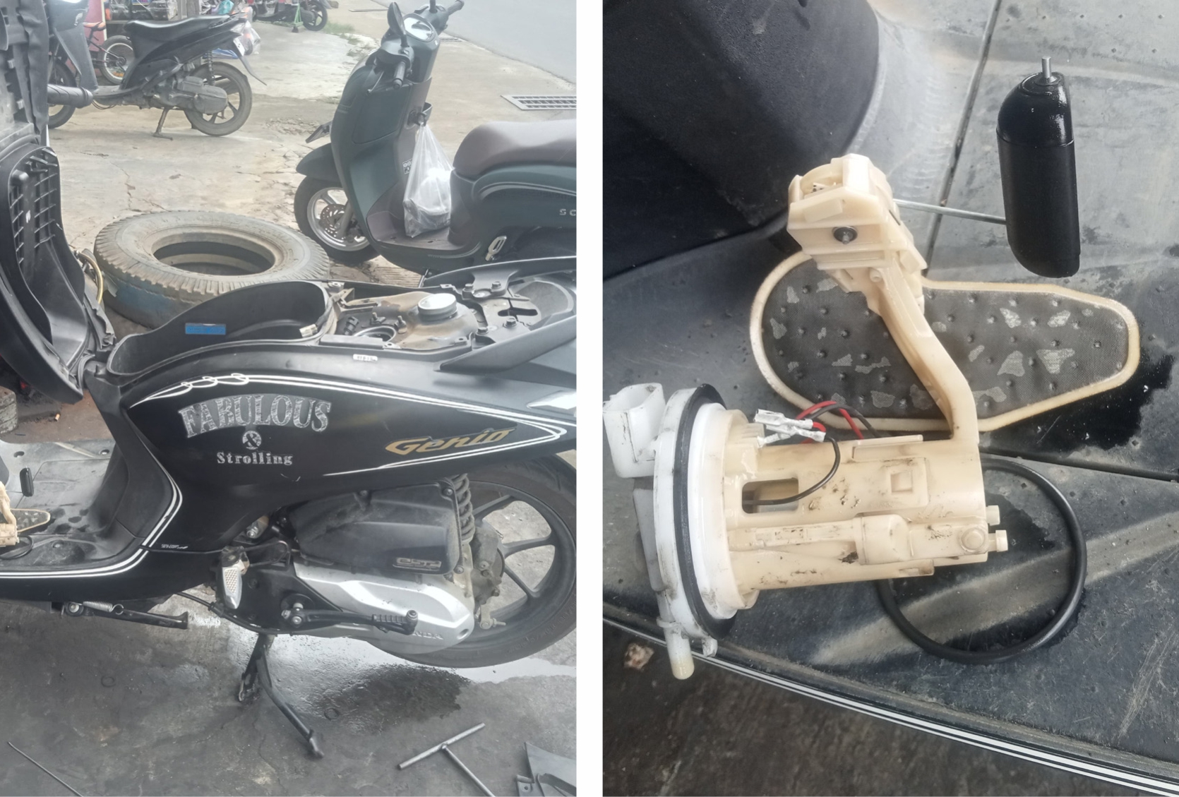 Menurut Iwan, gejala yang dialami pengguna motor seragam: mesin brebet, sulit dinyalakan, hingga mati mendadak. Setelah diperiksa, filter bensin ditemukan dalam kondisi sangat kotor, dipenuhi endapan mirip lumpur halus.