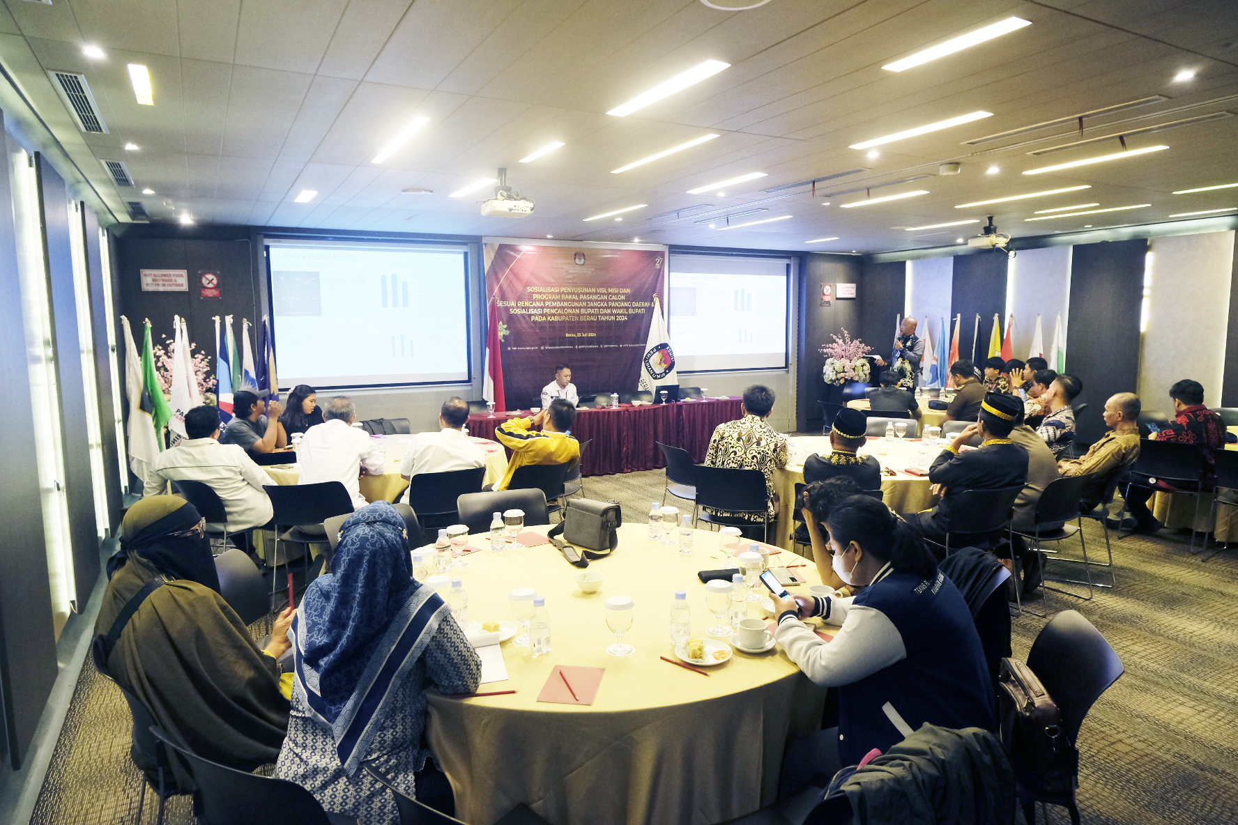 KOMISI Pemilihan Umum (KPU) Kabupaten Berau menggelar sosialisasi penyusunan visi, misi dan program bakal pasangan calon sesuai Rencana Pembangunan Jangka Panjang Daerah (RPJPD) dan sosialisasi pencalonan bupati dan wakil bupati pada kabupaten Berau, pada Kamis (25/7/2024).