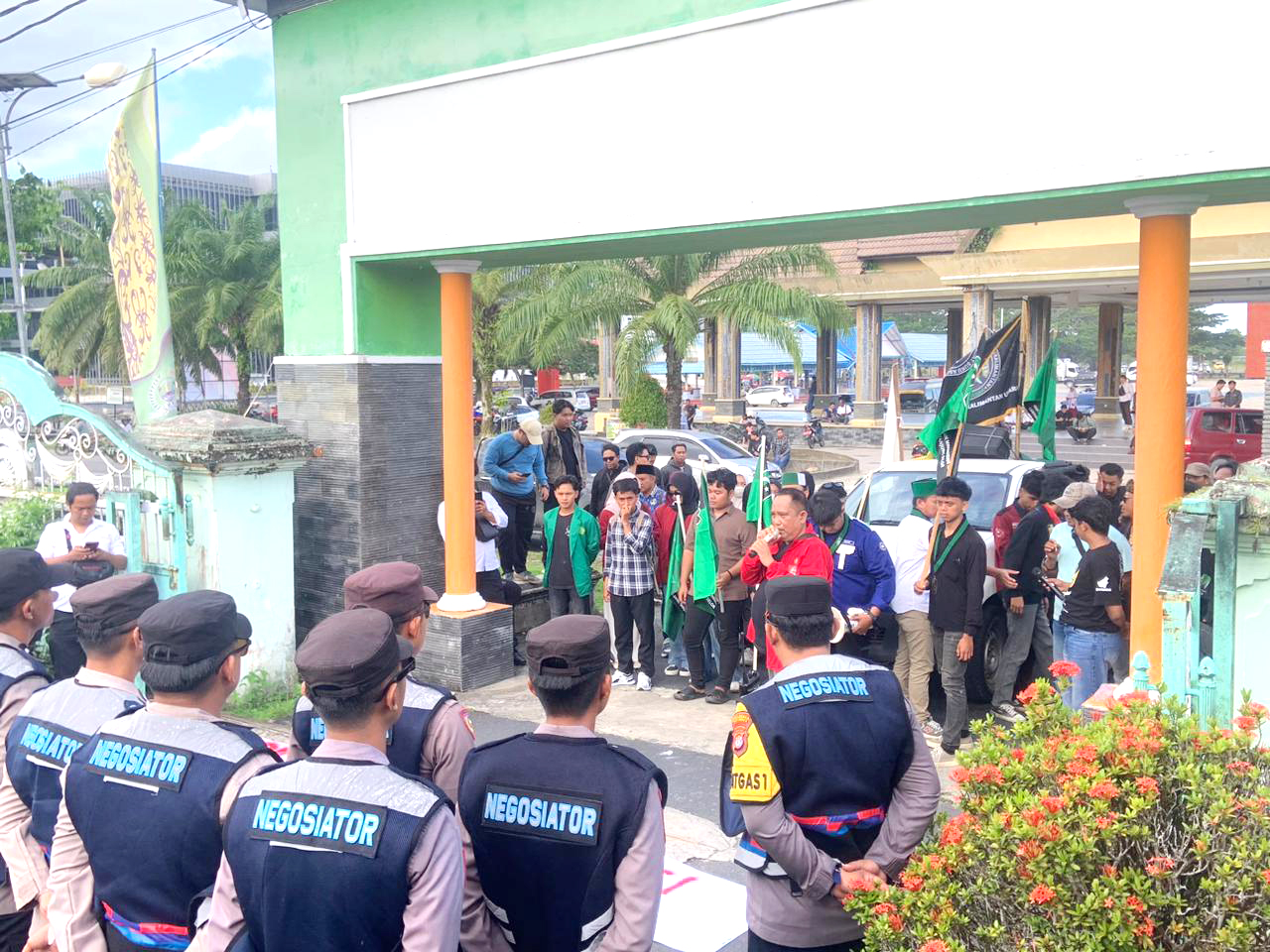 Puluhan mahasiswa yang tergabung dalam Himpunan Mahasiswa Islam (HMI), menggelar aksi unjuk rasa di depan Kantor DPRD Bulungan, Senin (17/11/2025).