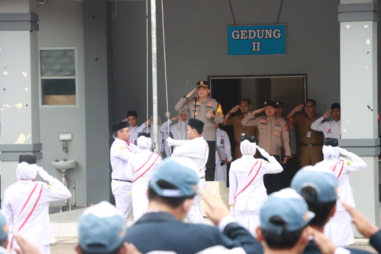 Polres Berau – Kapolres Berau, AKBP Steyven Jonly Manopo, S.I.K., memimpin upacara bendera di SMA Negeri 1 Berau pada Seni 26 Agustus 2024.
