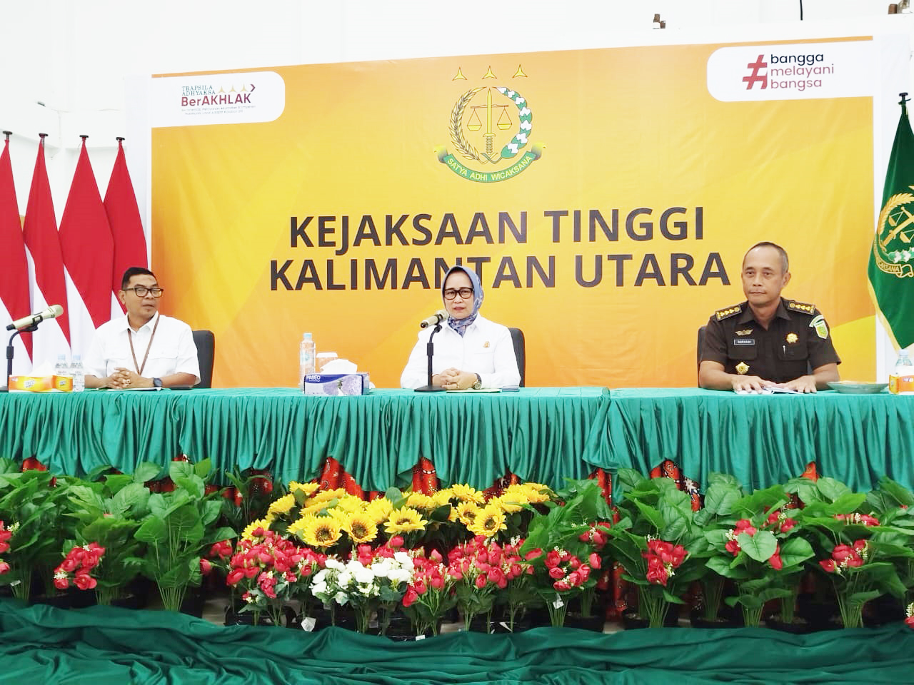 Kajati Kaltara, Amiek Wulandari (tengah) memimpin pres rilis dugaan tipikor di Dinas PUPR-Perkim Kaltara, Rabu (19/2/2025).