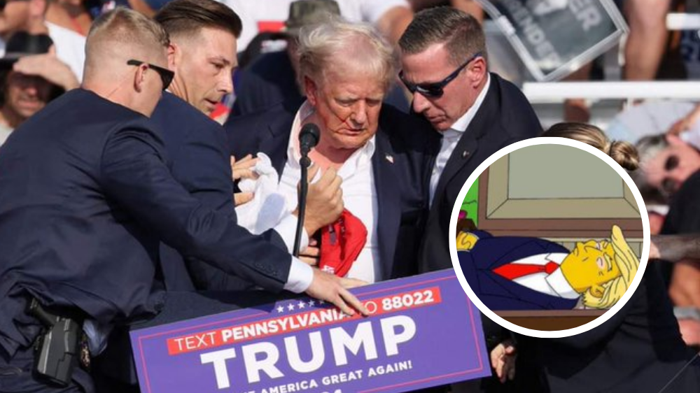 Tiba-tiba saja ada suara ”swiiing” di dekat telinga kanannya. Secara spontan Trump meraba kupingnya. Berdarah. Petugas dinas rahasia pun bergegas naik ke panggung. Melindungi Trump.