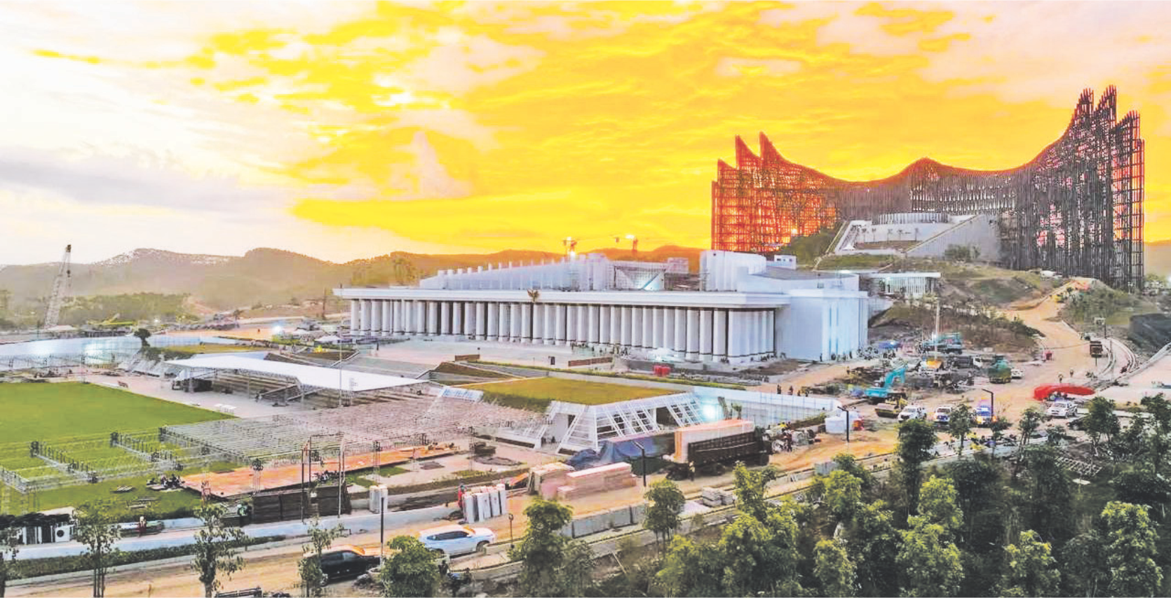 Istana Kepresidenan di IKN dirancang dengan konsep yang memperhatikan kebhinekaan Indonesia, menjadikannya lebih dari sekadar bangunan, tetapi juga simbol persatuan. Dengan luas lahan 55,7 hektare dan luas tapak 334.200 meter persegi, Istana Garuda dirancang untuk menjadi pusat kegiatan kenegaraan sekaligus daya tarik baru bagi wisatawan. (disway.id/arie)
