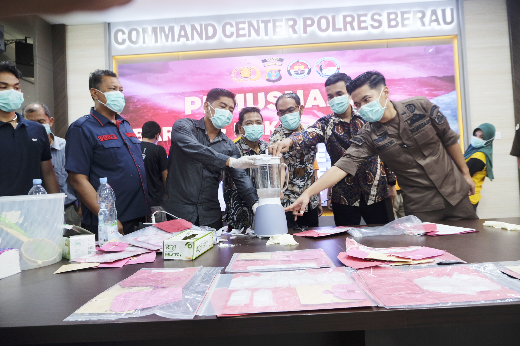 Sebagai informasi, pemusnahan barang bukti dilakukan dengan cara memasukkan satu persatu barang bukti ke dalam blender yang telah diisi air.