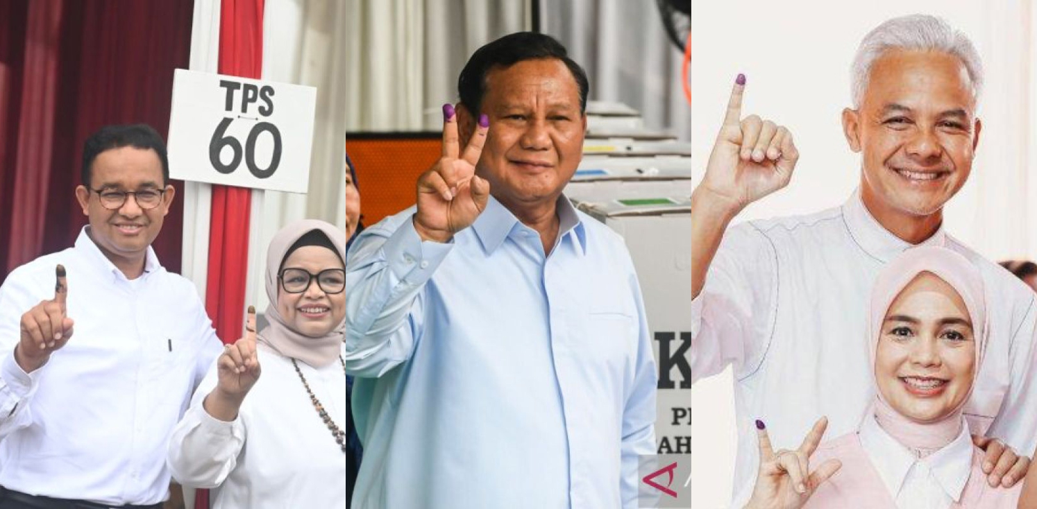 Pasangan calon presiden dan wakil presiden nomor urut 02, Prabowo-Gibran unggul telak dari kedua rivalnya di hampir semua lembaga survei, perolehan sementara lebih dari 50 persen. Sementara pasangan lainnya hanya 10 persen dan 20 persen lebih.