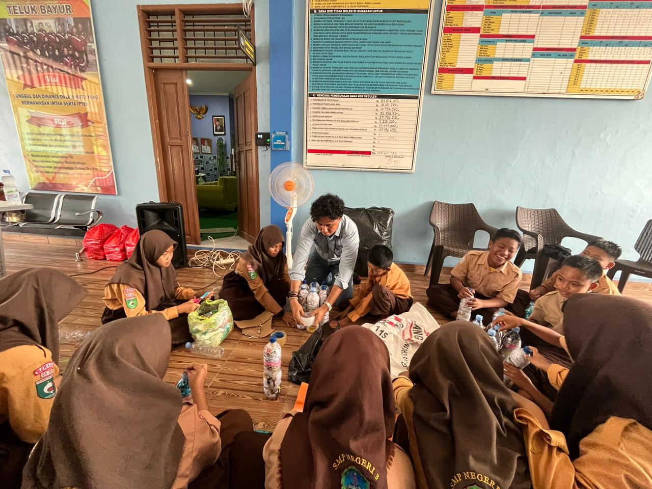PT PAMA saat memberikan pelatihan pembuatan Ecobrick kepada siswa-siswi SMPN 3 Teluk Bayur.