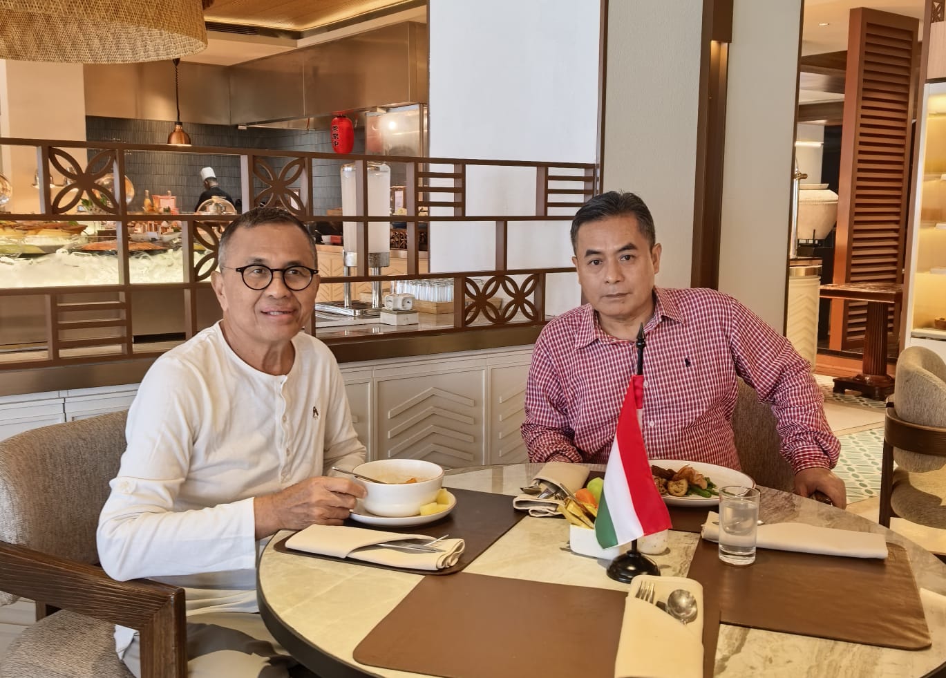 Saya pilih masakan Hungaria hanya karena lokasinya. Di sebelah klinik stem cell dr Yanti di ArtHotel, Gatot Subroto. Setelah itu Kang Dasep saya ajak podcast di lantai 19 gedung Menara Global. Saya bisa pinjam studio podcast di situ: milik IDN Times. Wartawan senior Uni Lubis, menjabat pemred di situ.