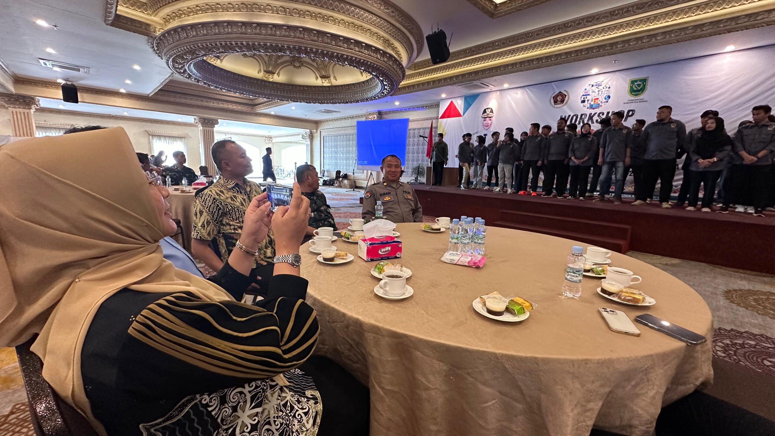 Segera wanita berhijab dengan busana batik itu meraih telepon cerdas yang sebelumnya di atas meja, dan dialihkan ke mode kamera. Sembari duduk di meja bundar khusus tamu VIP, ia kemudian mengarahkan lensa kamera untuk mengabadikan momen para wartawan yang sedang dilantik. Tak hanya foto, sebagian berupa video.