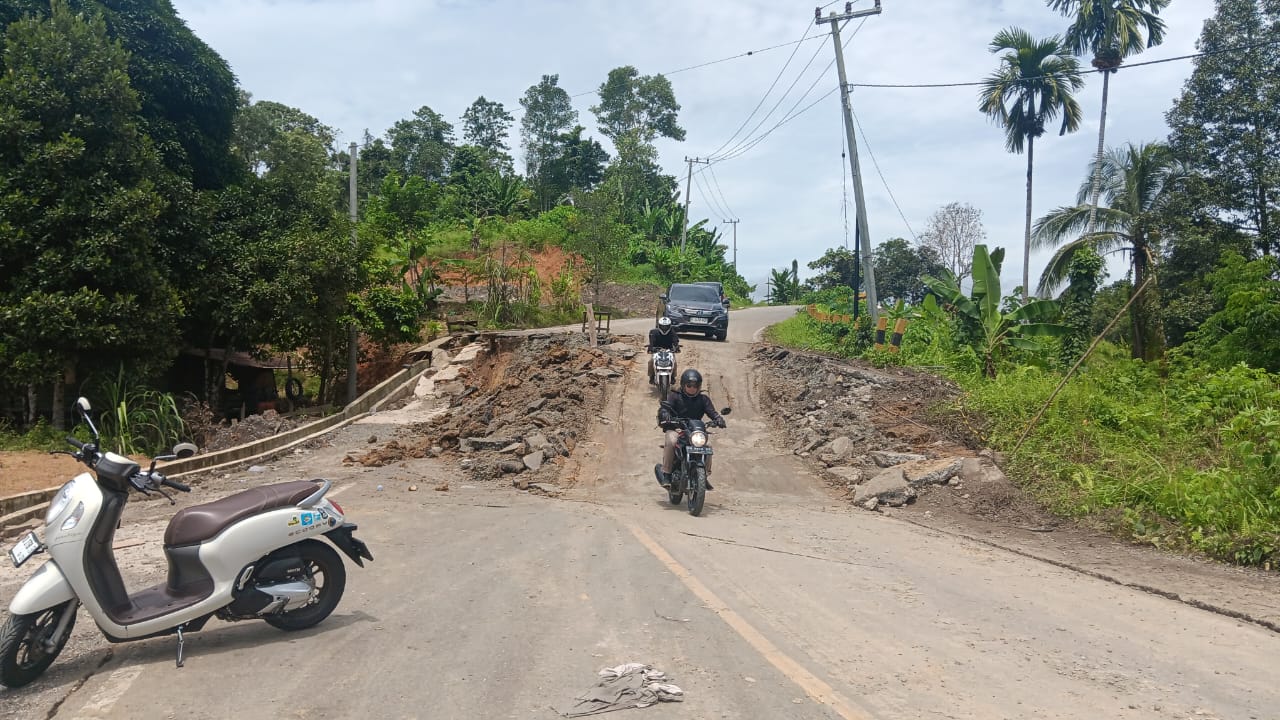 “Kita sudah pasang papan petunjuk informasi kepada pengendara lebih kurang 500 meter hingga 1 kilometer mendekati jalan ambles agar mengurangi kecepatan,” ujarnya.