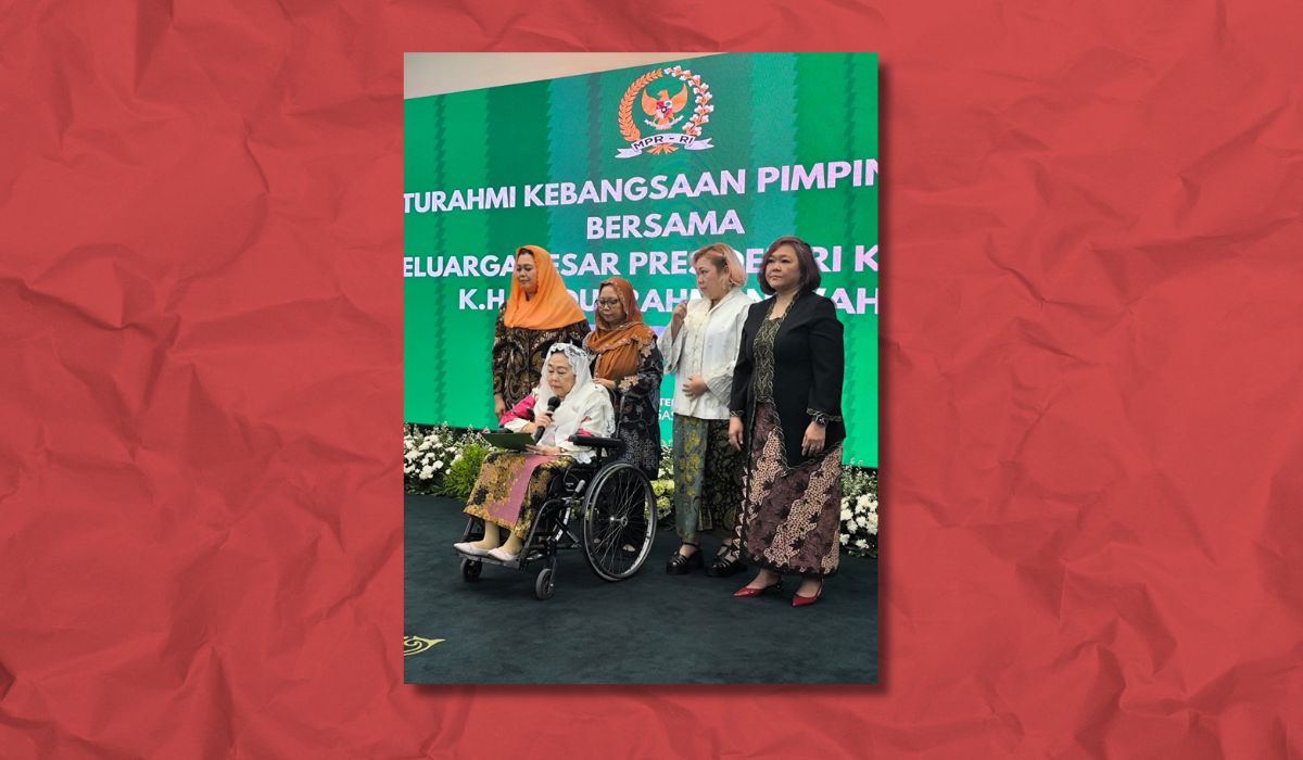 Ketua MPR menyerahkan putusan itu langsung ke Sinta Nuriyah yang duduk di kursi roda. Keempat putri mendampingi sang ibu.