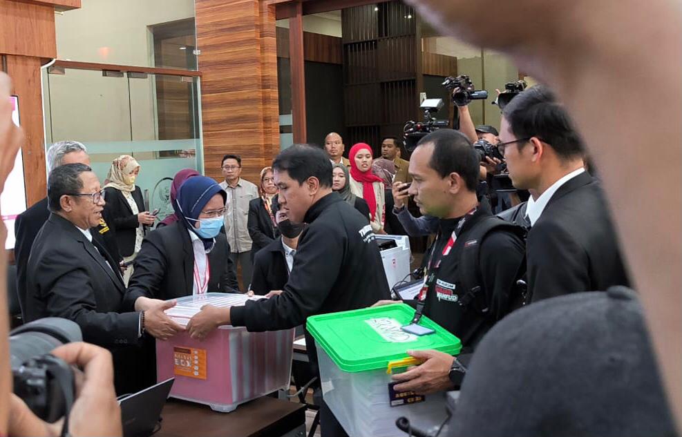 Lebih lanjut, mereka tiba di gedung MK secara terpisah dan membawa beberapa box yang berisikan dokumen untuk melayangkan gugatan PHPU.