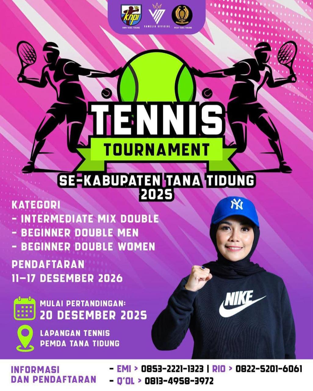 DUNIA olahraga di Kabupaten Tana Tidung kembali diramaikan dengan gelaran kompetisi bergengsi. KNDI Tana Tidung bekerja sama dengan Vamelia Official dan Persatuan Lawn Tennis Indonesia (PELTI) Tana Tidung secara resmi membuka pendaftaran Turnamen Tenis Kabupaten Tana Tidung 2025. Ajang ini menjadi salah satu agenda olahraga terbesar yang ditunggu-tunggu masyarakat.